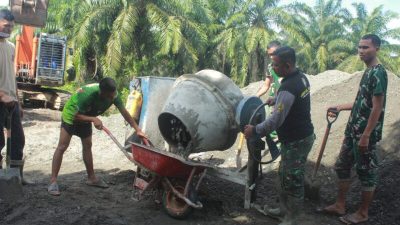 Nagan Raya – TNI bersama Warga laksanakan Pengecoran lantai atas Jembatan Aramco, beton dituangkan ke…