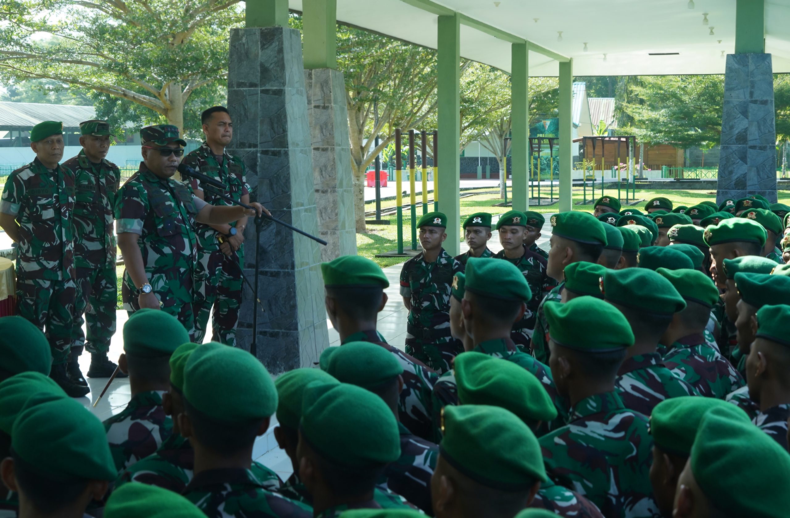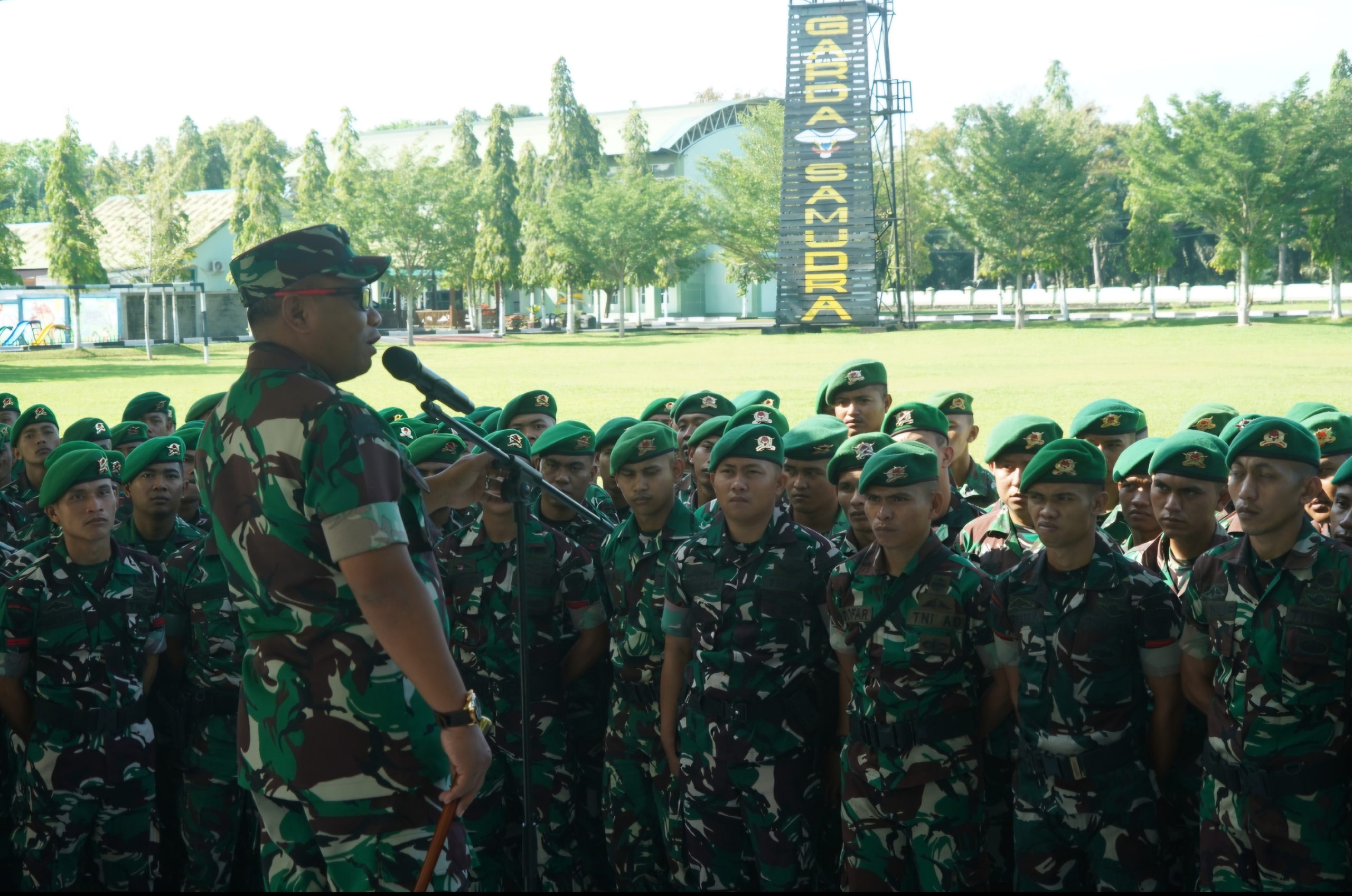 Meulaboh – Komandan Korem 012/Teuku Umar Kolonel Inf Windarto S.Sos., M.M memberikan pengarahan kepada prajurit Batalyon Infanteri 116/Garda Samudra yang tergabung dalam Satuan Tugas (Satgas) Yonif 117/Ksatria Yudha. Kegiatan tersebut dilaksanakan sebagai bentuk pembekalan dan motivasi kepada prajurit sebelum melaksanakan tugas operasi, Kamis (05/03/2026).