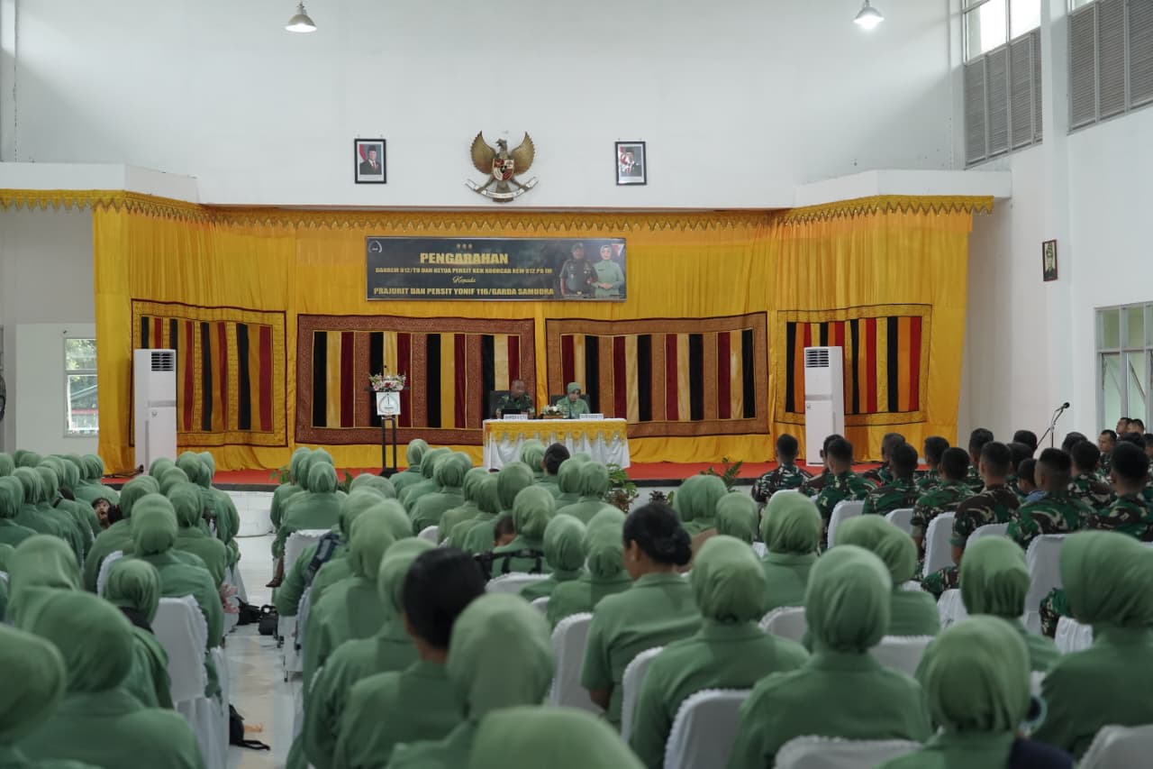 Dalam kunjungannya, orang nomor satu di jajaran Korem 012/TU tersebut memberikan arahan dan motivasi kepada seluruh prajurit dan anggota Persit Yonif 116/GS. Ia memulai sambutannya dengan memperkenalkan diri dan keluarganya.