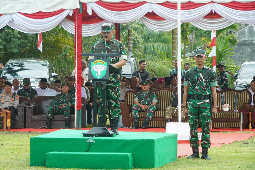 Setelah prosesi pelepasan tanda peserta TMMD, Kasdam IM membacakan amanat KASAD Jenderal TNI Maruli Simanjuntak,M.Sc., selaku Penanggung Jawab Operasional (PJO) TMMD. Dalam amanatnya disampaikan bahwa TMMD merupakan program terpadu sebagai wujud kolaborasi positif antara TNI AD, pemerintah daerah, dan masyarakat dalam mengakselerasi program pembangunan nasional, khususnya di wilayah pedesaan dan daerah terpencil.