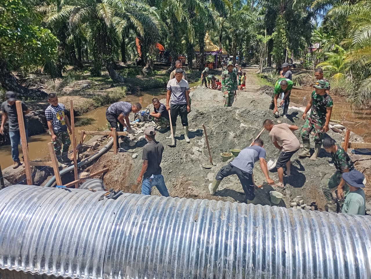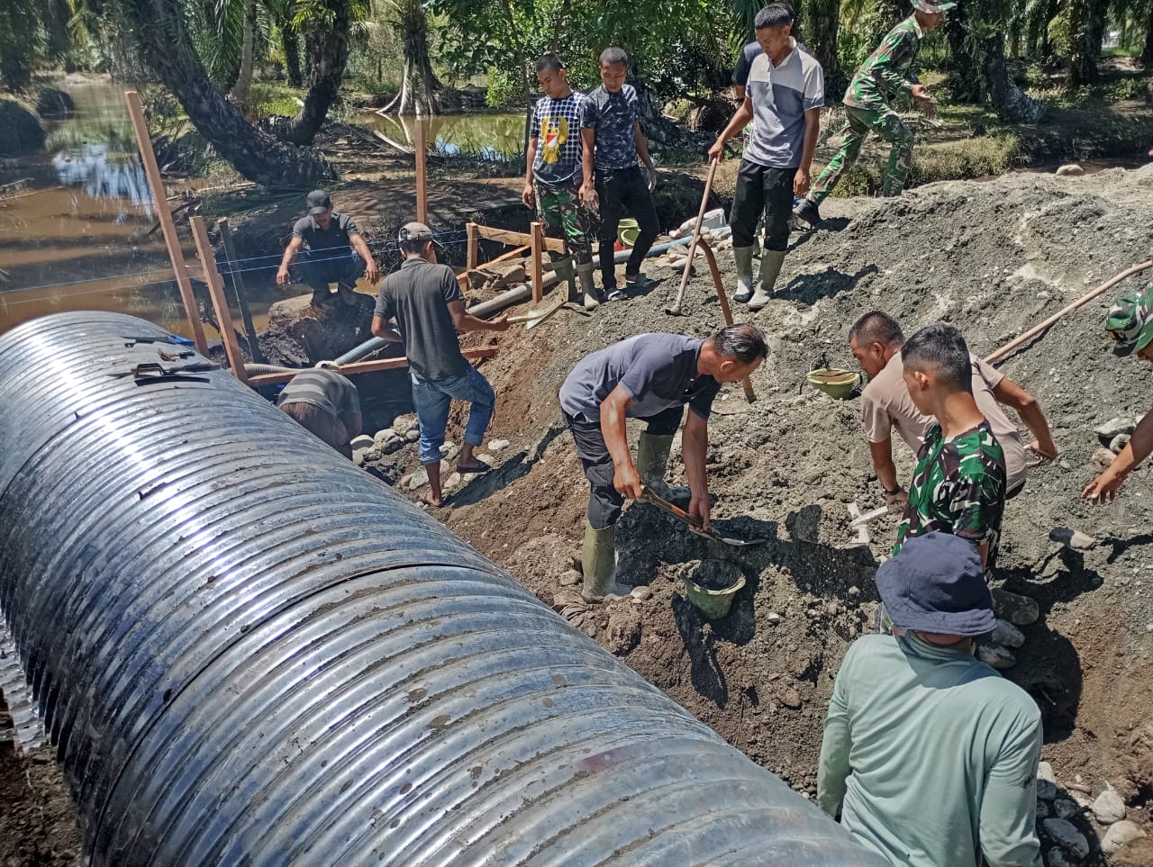 Nagan Raya – Dalam upaya mendukung percepatan pembangunan infrastruktur serta meningkatkan aksesibilitas masyarakat, Kodim 0116/Nagan Raya mengerahkan personel TNI untuk melaksanakan kegiatan pengecoran di Areal Jembatan Aramco, tepatnya di Desa Kuala Tripa Kecamatan Tripa Makmur Kabupaten Nagan Raya Minggu 04 April 2026.