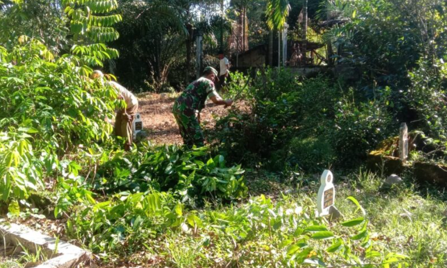 Dalam kegiatan tersebut terlihat Babinsa dan warga bahu-membahu memangkas rumput liar yang sudah mulai tinggi, membersihkan semak belukar, serta mengumpulkan sampah dedaunan kering yang menumpuk di sela-sela makam. Pembersihan juga mencakup penataan jalan setapak menuju lokasi pemakaman agar akses bagi warga yang akan berziarah menjadi lebih mudah dan aman.