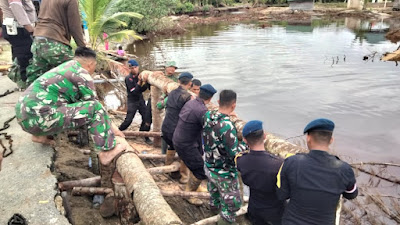 Kehadiran personel gabungan menjadi penyemangat tersendiri bagi warga. Sinergi lintas sektor terlihat jelas saat aparat dan masyarakat bekerja tanpa mengenal lelah demi mempercepat proses pengerjaan jembatan darurat tersebut.