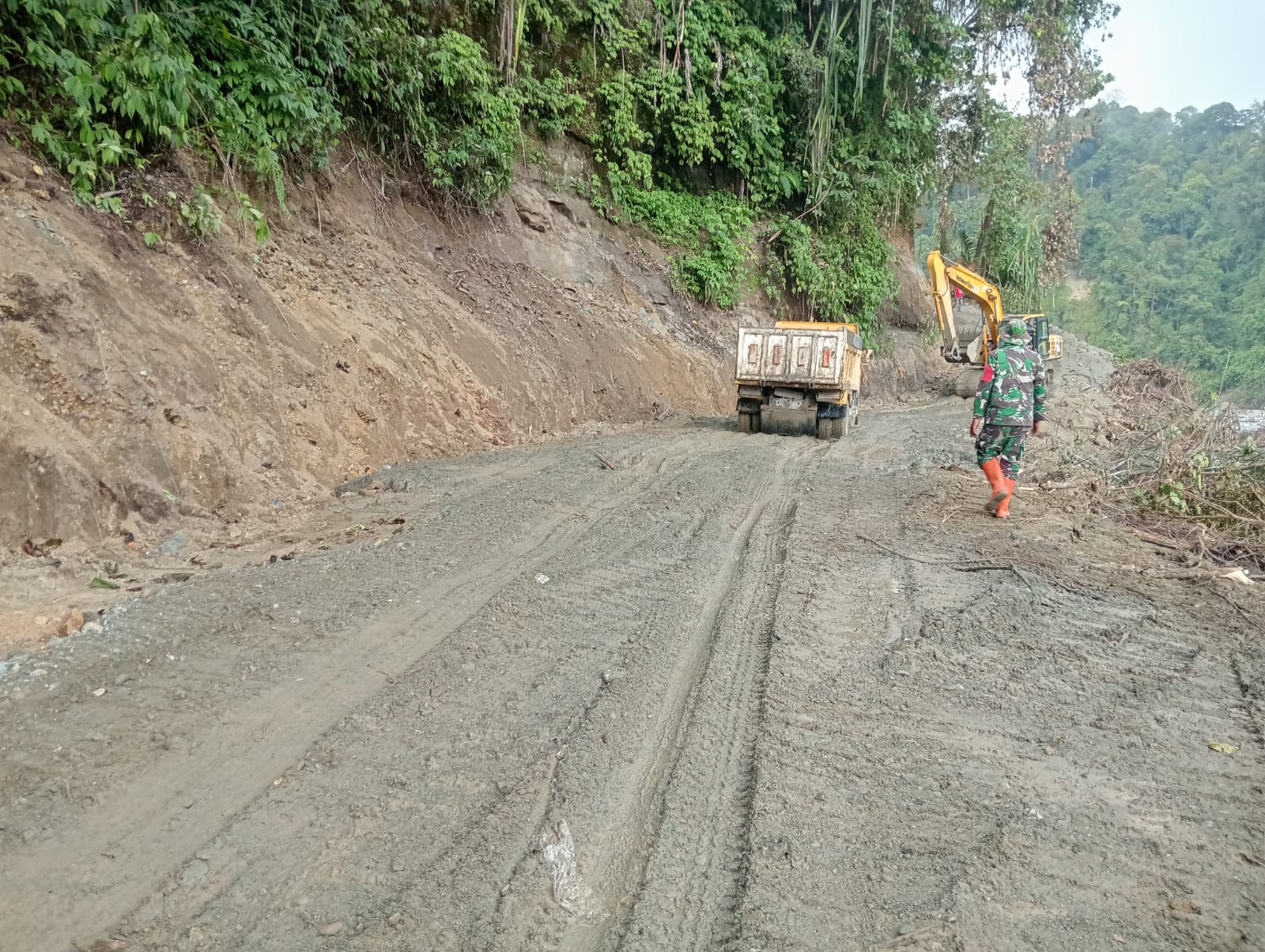 Aceh Barat – Dengan penuh semangat 55 dan disertai ketulusan hati, Prajurit Kodim 0105/Abar terus bekerja maksimal melakukan pembangunan infrastruktur Jalan penghubung Desa Jambak-Sikundo Kecamatan Pante Ceureumen, Jum’at (30/1/2026).