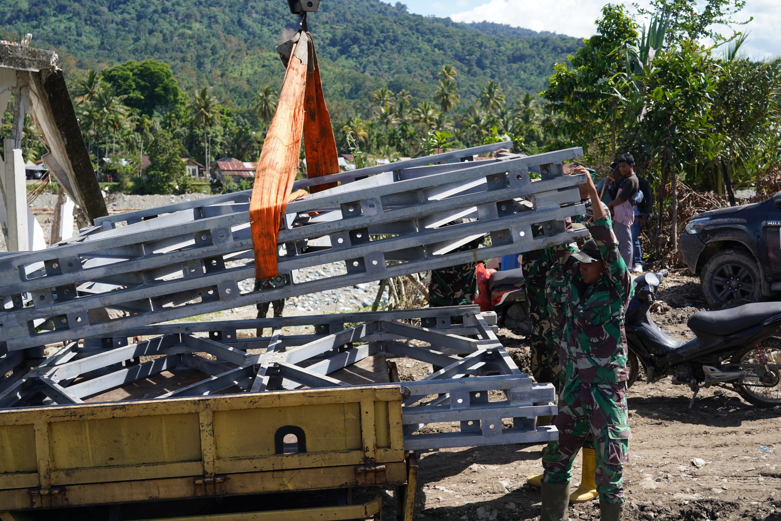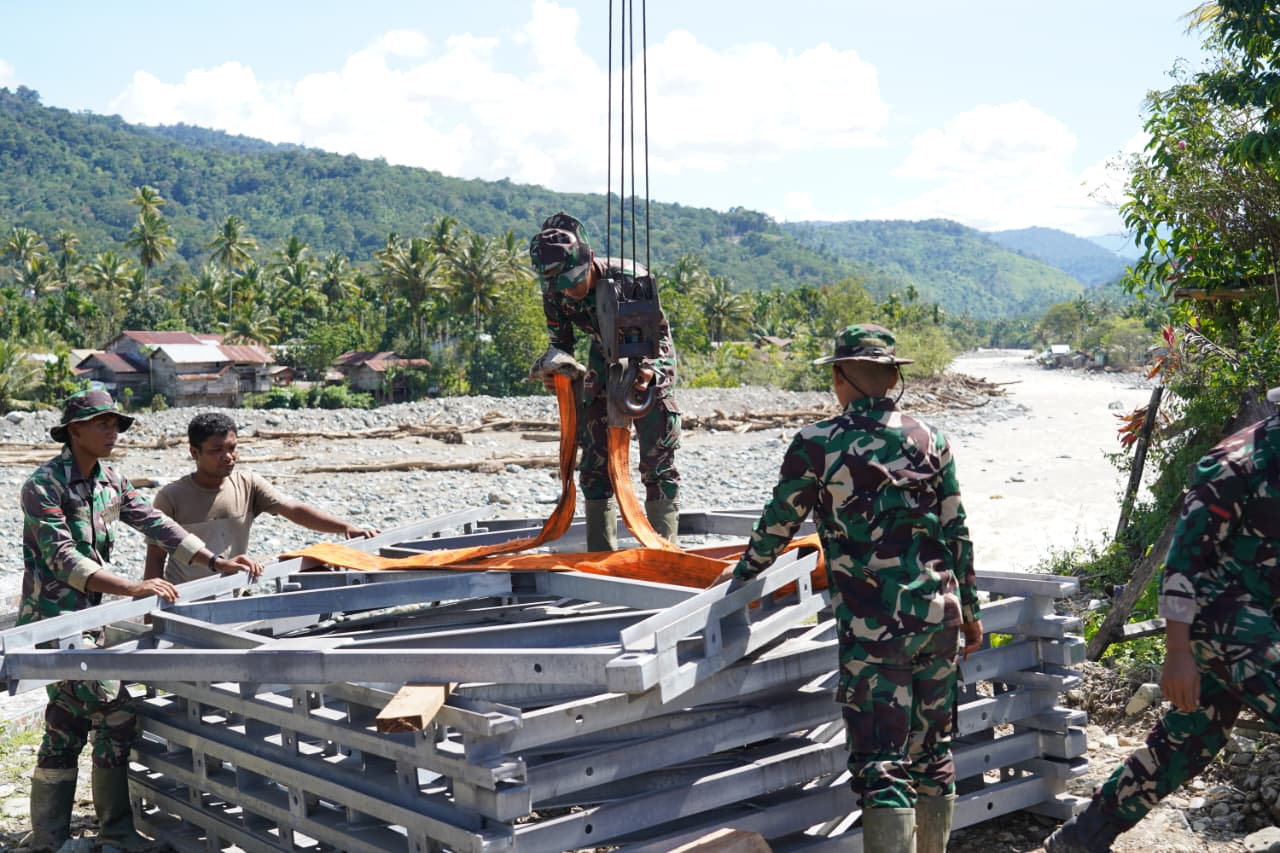 Untuk mengatasi hal tersebut, prajurit TNI bersama dinas terkait melakukan perbaikan dan perataan badan jalan agar dapat dilalui dengan lebih aman. Di saat yang sama, percepatan pembangunan Jembatan Bailey terus digenjot. Saat ini, fokus pekerjaan diarahkan pada pemindahan material jembatan dari sisi seberang menuju titik pemasangan utama.