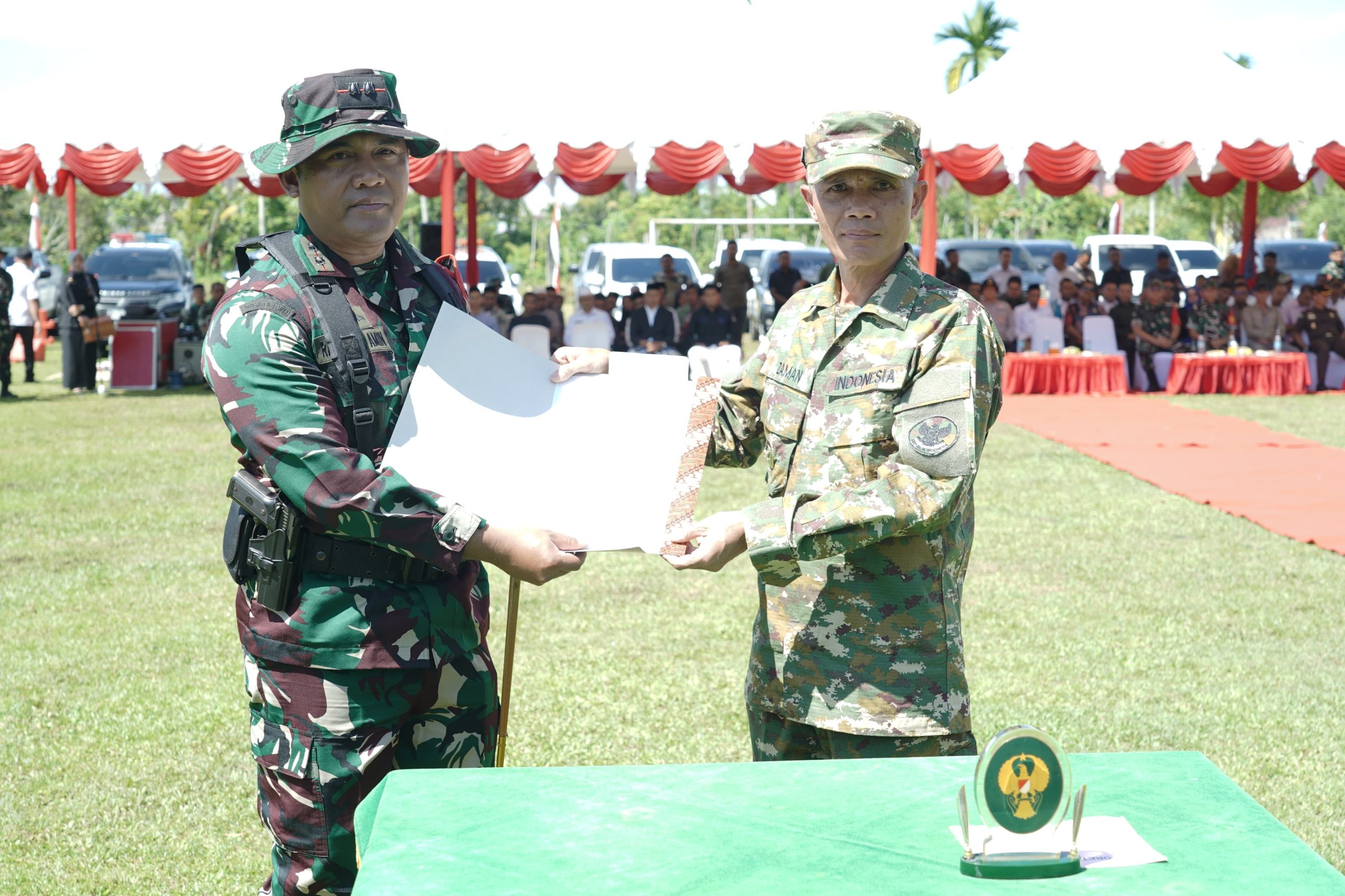 Aceh Barat Daya – Danrem 012/TU Kolonel Inf Windarto, S.Sos., M.M., yang diwakili oleh Ws. Kasiter Mayor Czi Abdurrahim Lubis, menghadiri Upacara Pembukaan TNI Manunggal Membangun Desa (TMMD) Reguler ke-128 TA 2026 Kodim 0110/Aceh Barat Daya yang berlangsung khidmat di Lapangan Bola Kaki Desa Gunung Cut, Kecamatan Tangan-Tangan, Kabupaten Aceh Barat Daya, Rabu (22/4/2026).