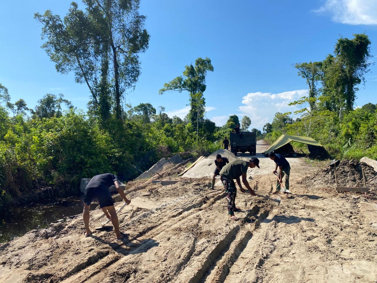 Proses perataan dilakukan dengan penuh ketelitian guna menjamin struktur jembatan memiliki daya dukung yang kuat dan aman saat digunakan nantinya. Selain itu, sinergi dan kekompakan antara personel TNI dan masyarakat setempat terus terjalin dalam mendukung percepatan pembangunan.