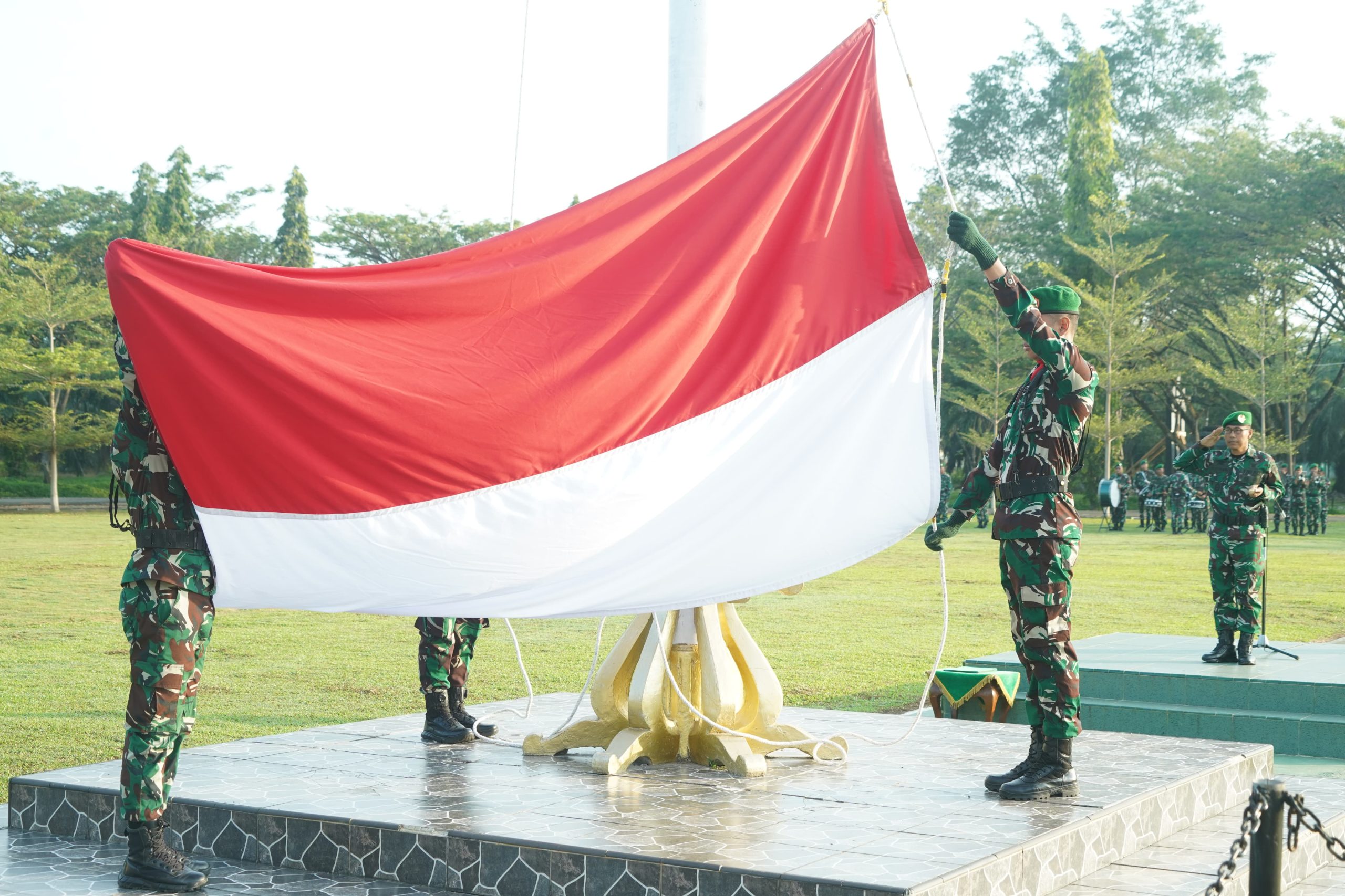 Prosesi upacara diawali dengan pengibaran bendera Merah Putih, dilanjutkan dengan pengucapan Sapta Marga, Sumpah prajurit Dan Delapan Wajib TNI oleh prajurit yang telah ditunjuk, serta rangkaian acara lainnya yang berlangsung dengan tertib dan lancar.