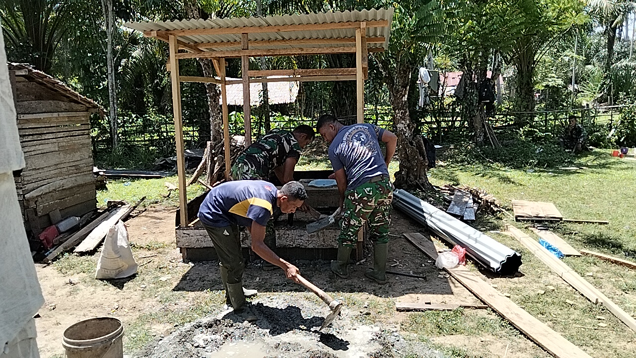 Pembangunan jamban atau toilet tersebut dikerjakan secara gotong royong oleh Personel Satgas TMMD bersama masyarakat setempat. Selain membantu secara fisik, para Personel juga memberikan edukasi kepada warga tentang pentingnya menjaga kebersihan lingkungan demi kesehatan keluarga.
