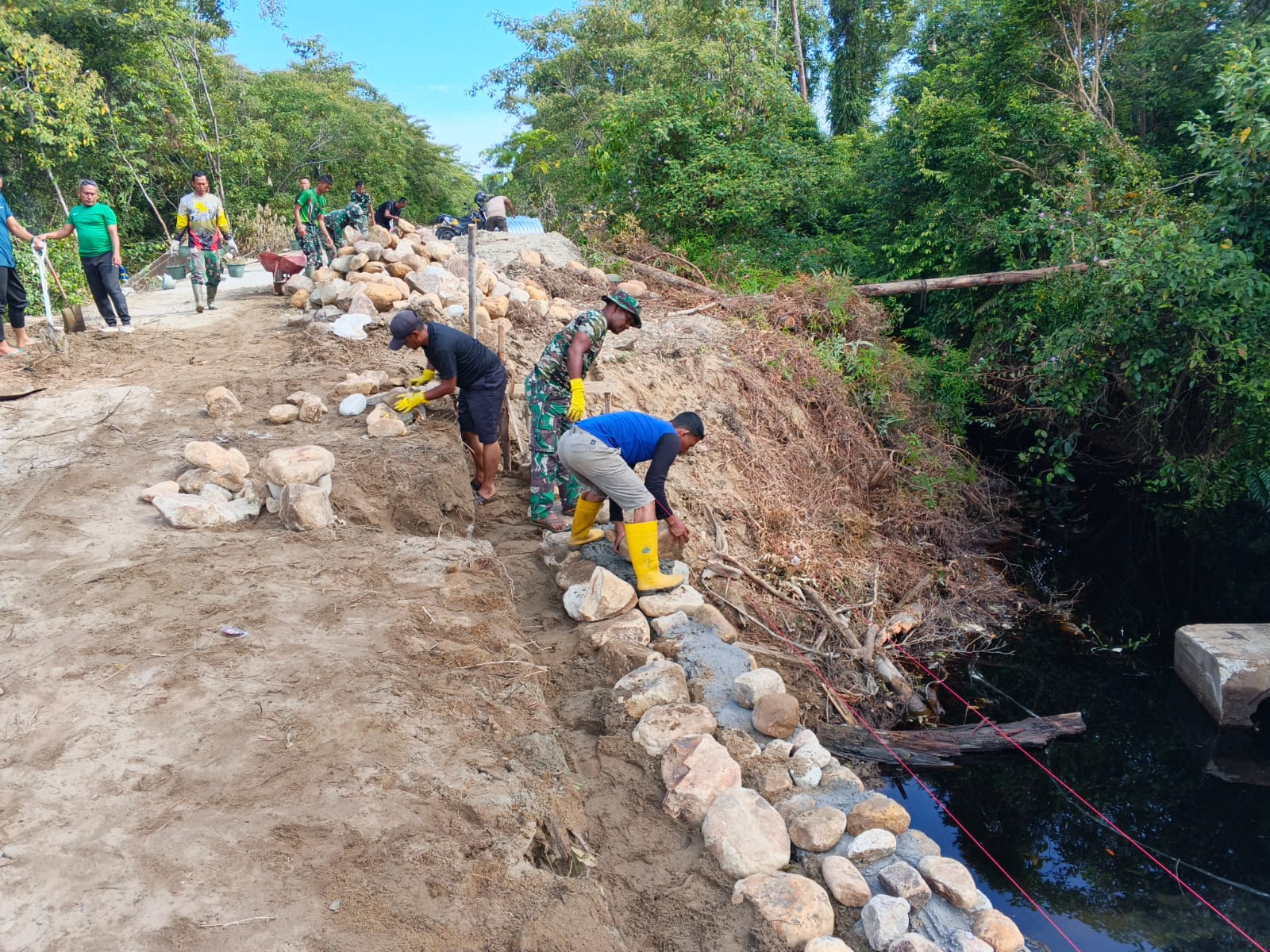 Warga setempat pun tampak semangat bekerja bersama TNI. Harapan mereka, jembatan Aramco ini dapat segera rampung sehingga akses transportasi menjadi lebih mudah, aman, dan lancar, serta mampu mendorong peningkatan aktivitas ekonomi dan kesejahteraan masyarakat di wilayah tersebut.