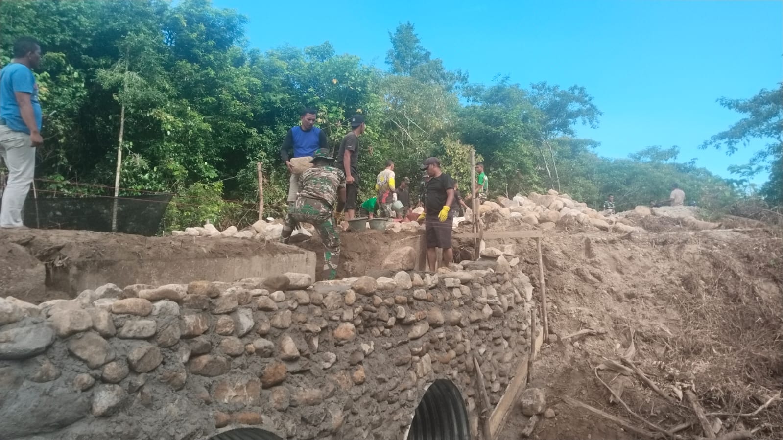 Ia menambahkan, meski dihadapkan dengan berbagai tantangan di lapangan, personel tetap bekerja maksimal dengan penuh semangat. “Kami berharap proses pembangunan ini berjalan lancar hingga selesai sesuai target yang telah ditentukan,” tambahnya.