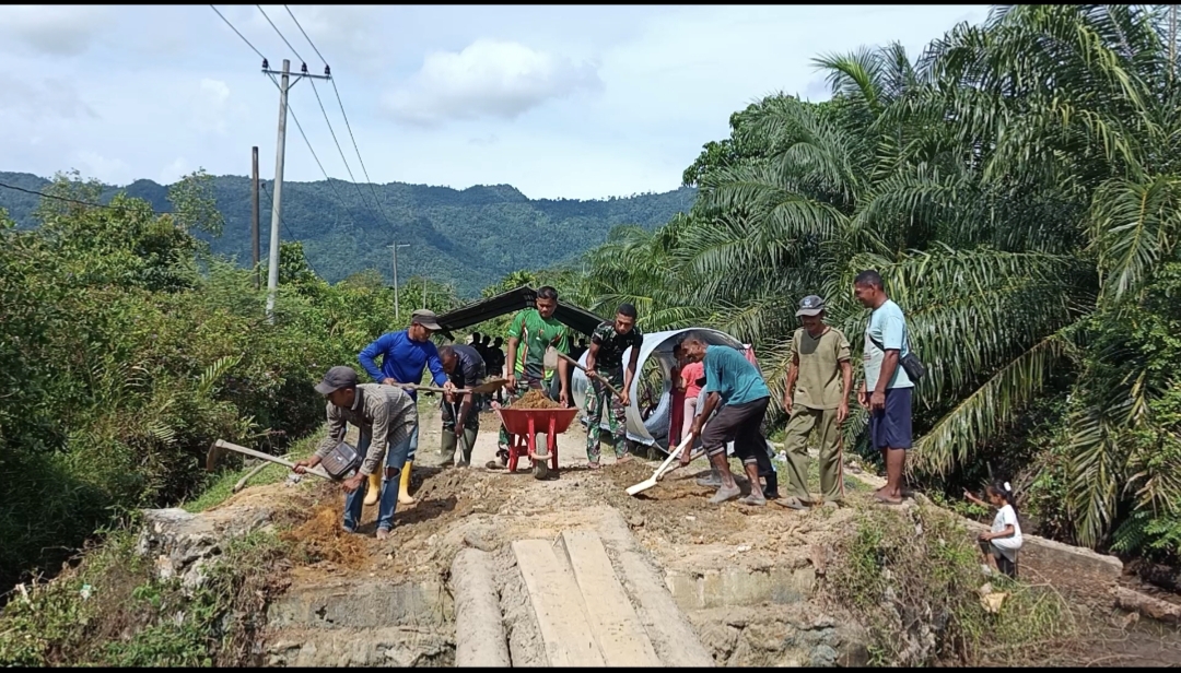 ACEH SELATAN – Energi kebersamaan antara TNI dan masyarakat kembali menjadi motor penggerak percepatan pembangunan. Di Desa Pasi Rasian, Kecamatan Pasi Raja, Aceh Selatan, pembangunan Jembatan Aramco terus menunjukkan progres signifikan berkat solidnya kolaborasi di lapangan, Minggu (05/4/2026).