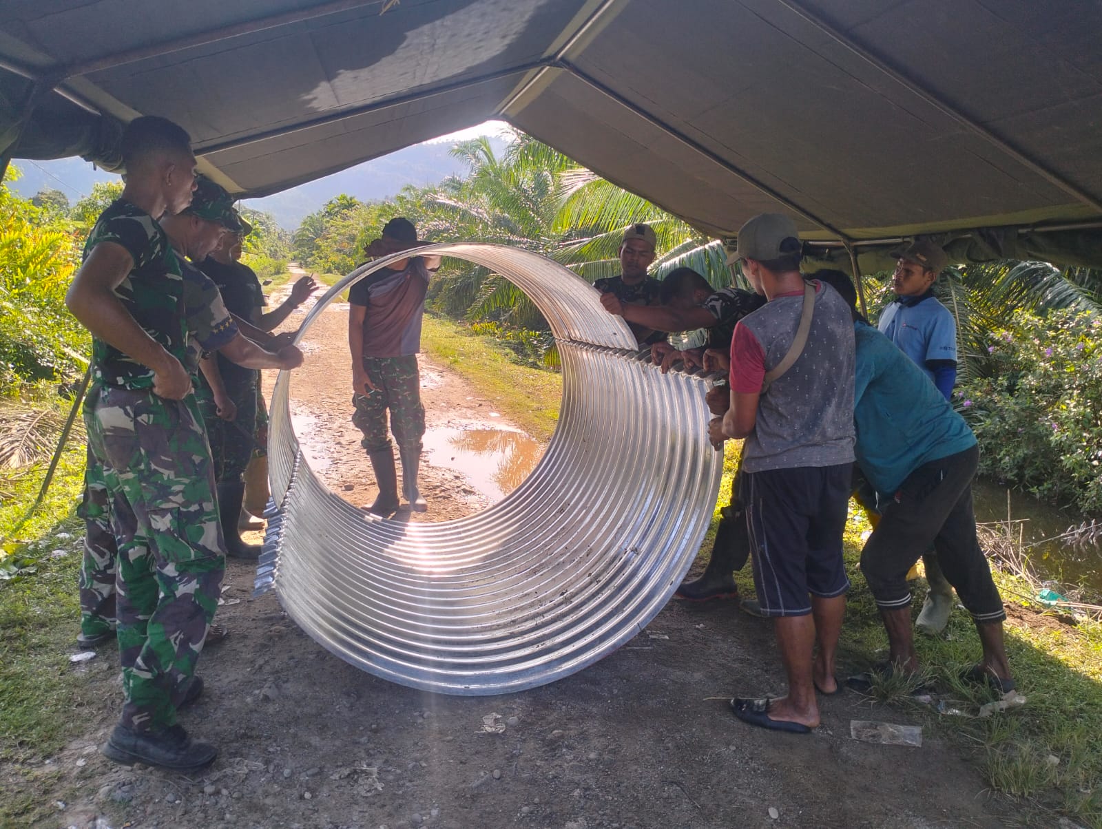TNI hadir tidak hanya menjaga kedaulatan, tetapi juga menjadi solusi dalam membantu percepatan pembangunan daerah bersama pemerintah dan masyarakat.